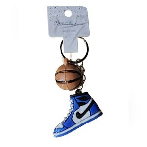 Featuring silver metal keyrings and vibrant soft plastic charms, includes a 2" Nike Air Jordan 1 Mid sneaker charm and a matching basketball charm. Whether you're on the court or just showing off your love for the game, this keychain set is the ultimate accessory to keep your style on point. Choose your favorite color.
