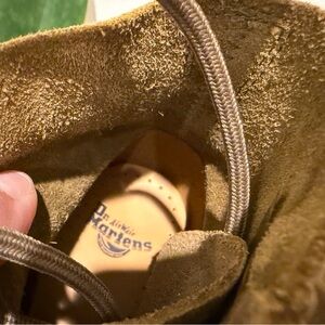 Khaki leather boots by Dr. Martens. Features signature yellow stitching and sturdy soles. I love these boots they are so comfortable and I would have kept them but they run sort of big. I’m a 6.5 but feels more like a 7.