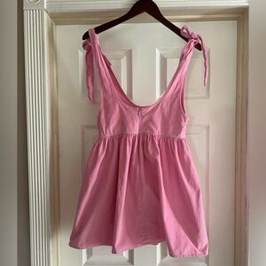This babydoll pinafore dress has a soft corduroy construction, heart-shaped pockets, a low scoop neckline, and adjustable tie straps.
