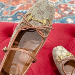 Gucci Women's Tan and Brown Loafers with Gold Accents