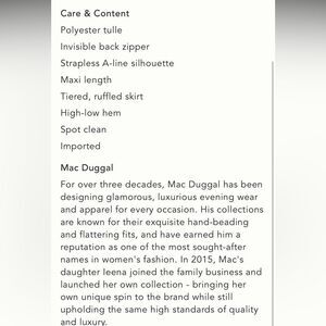 Mac Duggal Tiered Strapless Tulle A-Line High-Low Gown/ size 10
