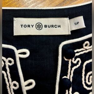 Pretty black embroidered Tory Burch tunic style dress. Has 2 side pockets. Embroidered trim around neckline, bottom of sleeves and hem. Excellent preloved condition.