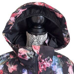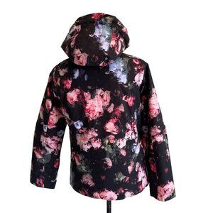 Discover the perfect blend of style and function with this pre-owned Roxy ski and snowboard jacket in size 14 (extra large girls). Designed for the adventurous spirit, this jacket showcases a stunning black base adorned with vibrant hot pink, light pink, and soft blue and green floral prints, making it a standout piece on the slopes.