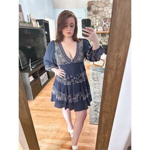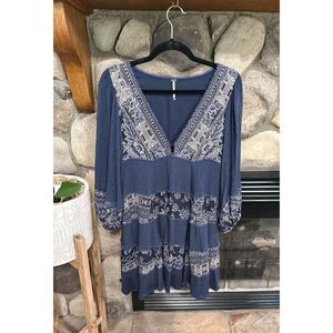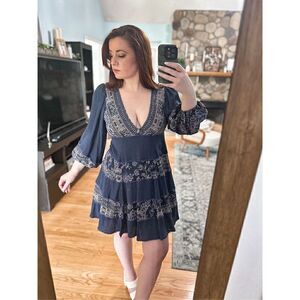 Free People boho peasant dress || size xs || good condition with minimal signs of wear || navy blue ||