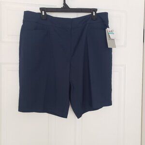 Brand new with tags women's PGA Tour shorts with comfort stretch waistband and 50 UPF moisture wicking fabric. Color is navy blue and size is 16. The waist is 18.5 inches from side seam to side seam and the inseam is 9.25 inches.
