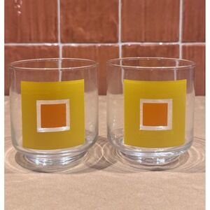 This is a rare set! Libby Geometric Glass Mid Century Modern Lowball Tumbler Set from the 1970's. Beautiful condition no cracks or chips. Printing is crisp and color is bold. A wonderful rare set of genuine Libby Glassware
