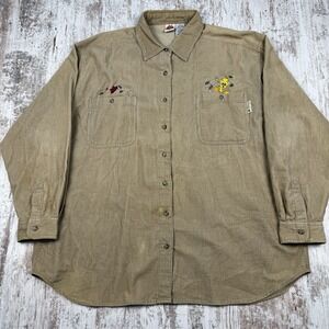 Vintage Looney Tunes Tweety Bird Corduroy Button Longsleeve Shirt Size XL