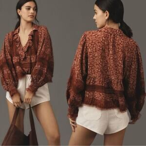 Free People Bohemian Gypsy Maxi Dress Duster Red Retro 70s Festival Size Large
