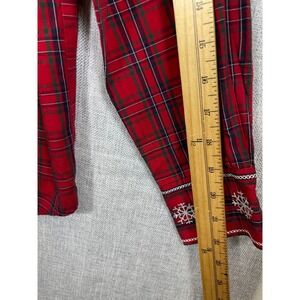 Karen Scott Sport Women Red Plaid Snowflake Embroidered Button Down Shirt Size S