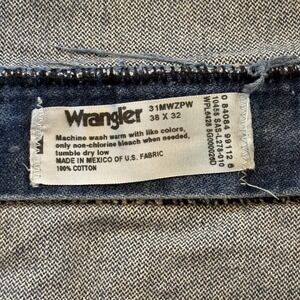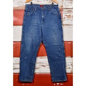 Keywords: Wrangler jeans, denim pants, relaxed fit jeans, work pants, utility jeans, men's jeans, blue jeans, casual pants, paint splatter jeans, workwear jeans, durable jeans, five pocket jeans, classic jeans, 38x32 jeans