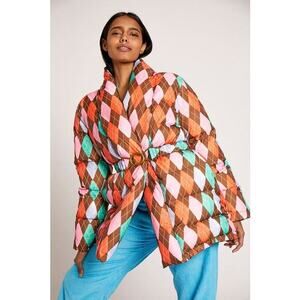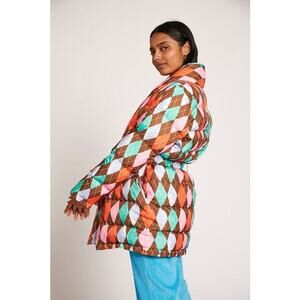 Rachel Antonoff Toni Belted Argyle Watercolor Puffer Size Small