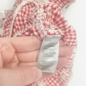 One Clothing Womens Cottagecore Gingham Tie Front Puff Sleeve Babydoll Top Size XL in Red and White