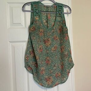 Papaya Blouse Medium Teal Mint Green with Florals Sleeveless