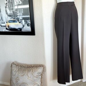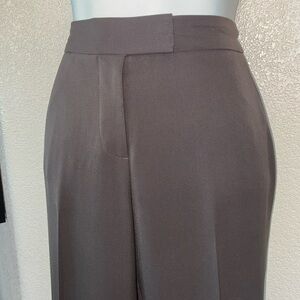 ANNE KLEIN taupe trousers, flat front, high waist, wide leg, side pockets. 6