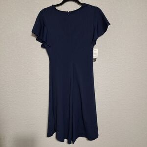 Oten Amazon Women’s Navy Blue Ruffle Sleeve Ruched Waist High-Low Dress