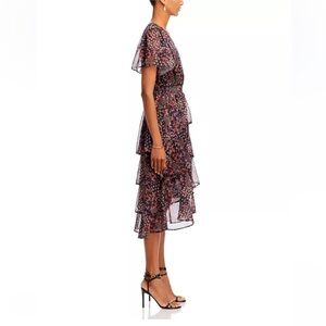 KOKO + MASON Floral Tiered Midi Dress Small NWT V-Neck Flutter Sleeve
