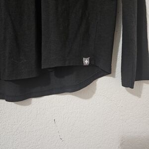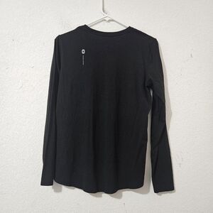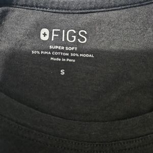 Figs Supersoft Longsleeve Underscrub top in black. made from a blend of 50% Pima cotton and 50% Modal fabric designed for comfort, softness, and an opaque finish. It features a relaxed fit with a subtle curved hem, to be worn under scrubs for warmth, or it can be worn solo