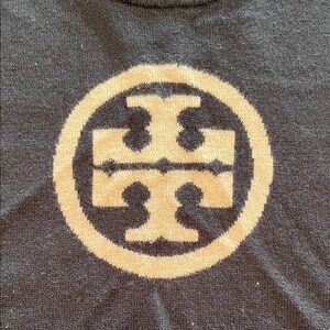 Elevate your wardrobe with this black crewneck sweater from Tory Burch. Features a bold logo design. Ideal for versatile styling. Small hall pictured near waistline (I’d fix it if I had the skills). Smoke-free home.