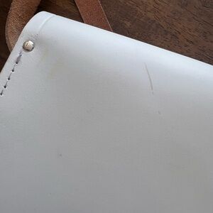 Classic and timeless Cambridge Satchel Company crossbody bag in a beautiful white leather. This structured satchel features the brand’s iconic double buckle closure, clean stitching, and an adjustable leather strap for crossbody or shoulder wear. The minimalist design makes it perfect for everyday use or dressing up an outfit.