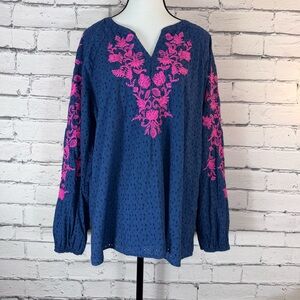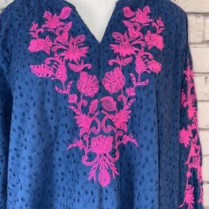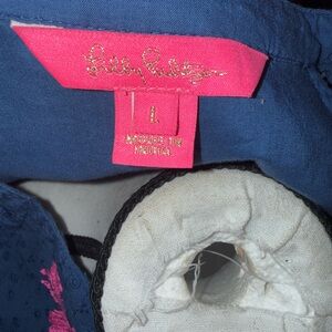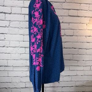 Lilly Pulitzer Coretta Navy Tunic Top Pink Embroidery Long Sleeved Size Large