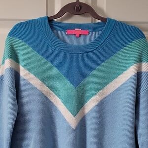 Lilly Pulitzer Crew Neck Blue & Teal Sweater with a Chevron Design Sz Small
