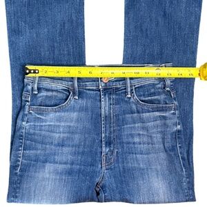 Tags: Mother, premium denim, blue jeans, ankle length, cropped, uncut hem, raw hem, frayed hem, casual, stretch, blue denim, weekend, streetwear, kick flare, cocktails, 70s, high rise, straight leg, 80s, 90s, Y2K