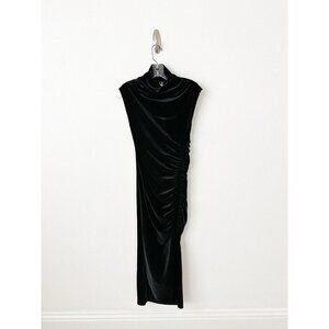NWT Anthropologie Maya Ruched Cowl-Neck Dress Strech Velvet XXS Black Midi