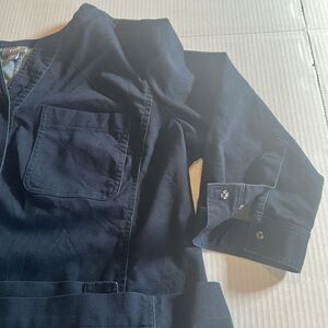J Jill stretch dark blue quarter stretch Sleeve Dress snap buttons pockets