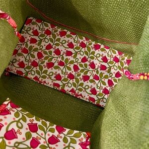 Charming green straw tote bag featuring a playful pink floral whale design. Perfect Spring/Summer bag. Used but excellent condition!