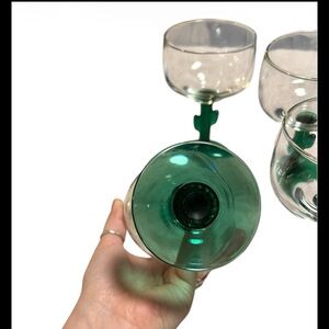 Set Of 4 Libbey Cactus Margarita Wine Glasses W A Green Glass Stem