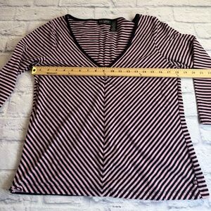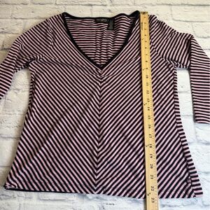Polo by Ralph Lauren V-Neck Pink and Black Striped Long Sleeve Tee
