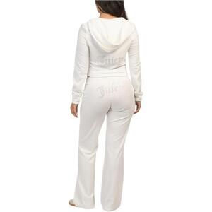 Velour, Sweatsuit, Tracksuit, Lounge, Loungewear, Bling, Rhinestone, Diamante, Cropped, Flared, Bootcut, Track, Hoodie, Pants, Set, Two-Piece, Y2K, Paris Hilton, Nicole Richie, Nostalgia, Casual, Cream, Off White, XL, Casual, Streetwear, Lounge, Travel, Errands, Weekend, Y2K, Pop Culture