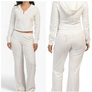 Juicy Couture Bling Cream Velour Sweatsuit Outfit XL Y2K Track Flared