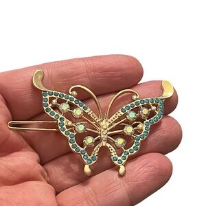 Elegant Gold and Blue Crystal Rhinestone Butterfly Hair Clip 3.0”