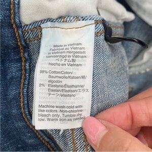 High rise skinny jeans in petite length. Distressed design. Gently used condition. Size 26P. Inseam measurement shown in last photo.