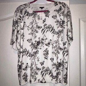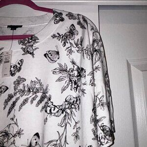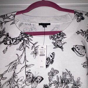 NWT TALBOTS BLACK WHITE ELBOW SLEEVE PULLOVER - BUTTERFLY TOILE WOMAN'S L LARGE