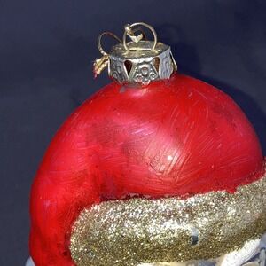 1 - Vintage Santa Head Ornament / Hand Blown Glass / Mercury / Glitter / Flaws