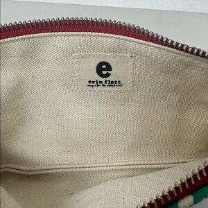 Vintage Erin Flett small zipped bag. Cream cloth bag with green screen print.