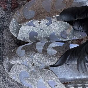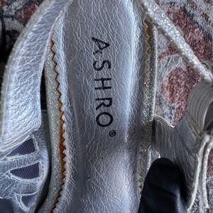 Keywords: silver heels, glitter shoes, mesh sandals, slingback heels, party shoes, evening wear, statement heels, women's fashion, special occasion, sparkle shoes, comfortable heels, wide width, ASHRO shoes