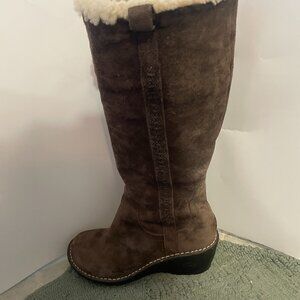UGG® 'Hartley' Wedge Brown Leather Suede/Sheepskin Winter Knee-Hi Boots Size 8 EUC
