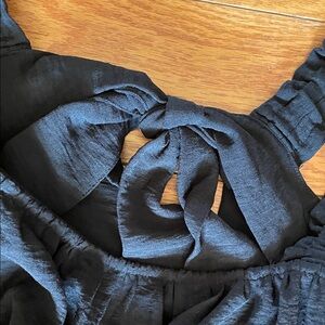 Chic black maxi boutique dress by JODIFL. Features stylish ruffle straps. Cute tie key hole back, sz Med but can also fit a sz Large. Perfect for any occasion.