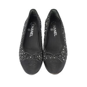 CHANEL Black Tweed CC Cap Toe Ballet Flats Size 37.5 US 7.5