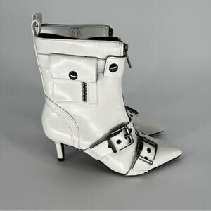 Wild Pair Moonbeam Heeled Crinkle Buckle booties white - 5.5