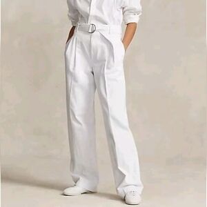 Polo Ralph Lauren Womens Pants Size 8 White Belted Wide Leg Denim