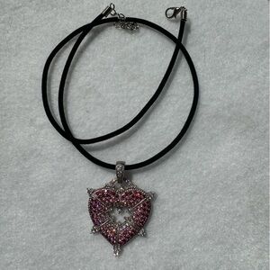 Judith Ripka Faux Pink Diamond 925 Sterling Silver Heart Shaped Pendant Necklace on Black Satin Cord
