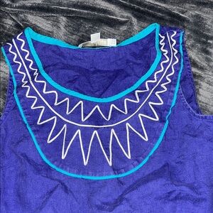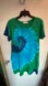 Bright tie-dye dress with a swirl pattern. Features shades of blue and green.