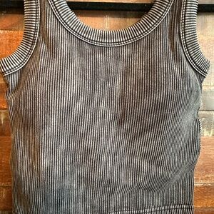 This stylish ribbed crop tank features a classic design. Perfect for casual outings or layering, it offers both comfort and style. Stretchy, removable padding, 90% nylon, 10% Spandex. Brand New/NWOT/Polybag