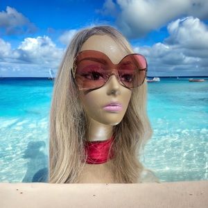 Brand new sunglasses a nice color come with box dust clothes booklet. The does is the on the sunglasses.