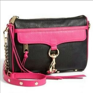 REBECCA MINKOFF Mini Mac Black & Hot Pink Crossbody Bag Handbag with Chain