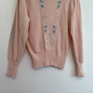 VINTAGE VTG ALBEE Light Baby Pink Pastel Embroidered Cottagecore Grandma Sweater